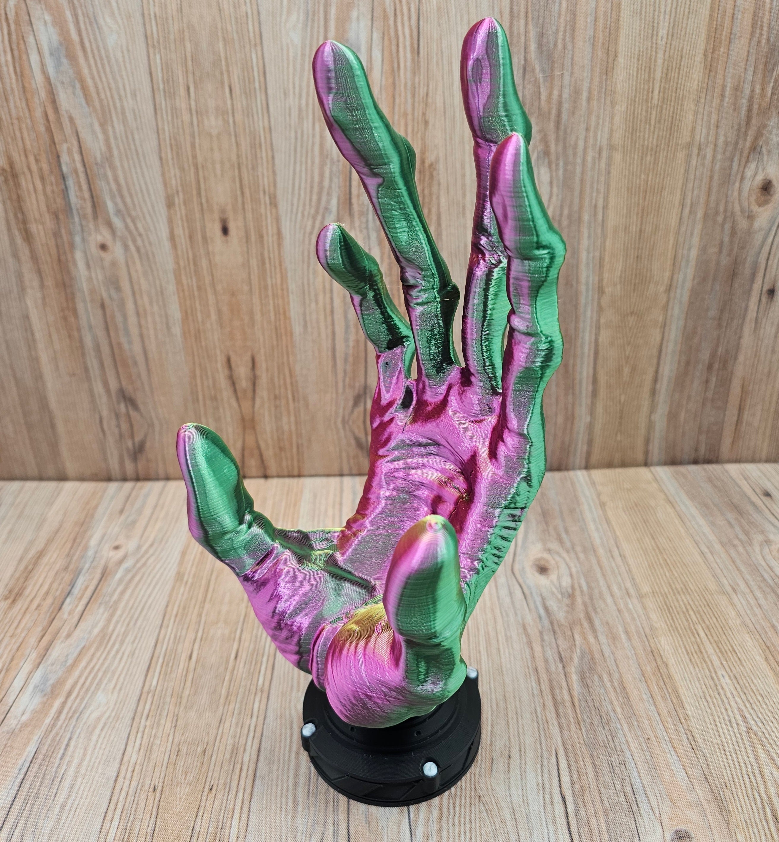 Elevate your gaming setup with this one-of-a-kind, 3D-printed controller holder, shaped like an alien hand with six fingers! Designed by STLFLX, this creative and functional holder is perfect for storing your Xbox, PlayStation, or other gaming controllers in style. Whether you're a hardcore gamer or just love unique accessories, this holder adds a touch of the extraterrestrial to your space. Controller not included.
