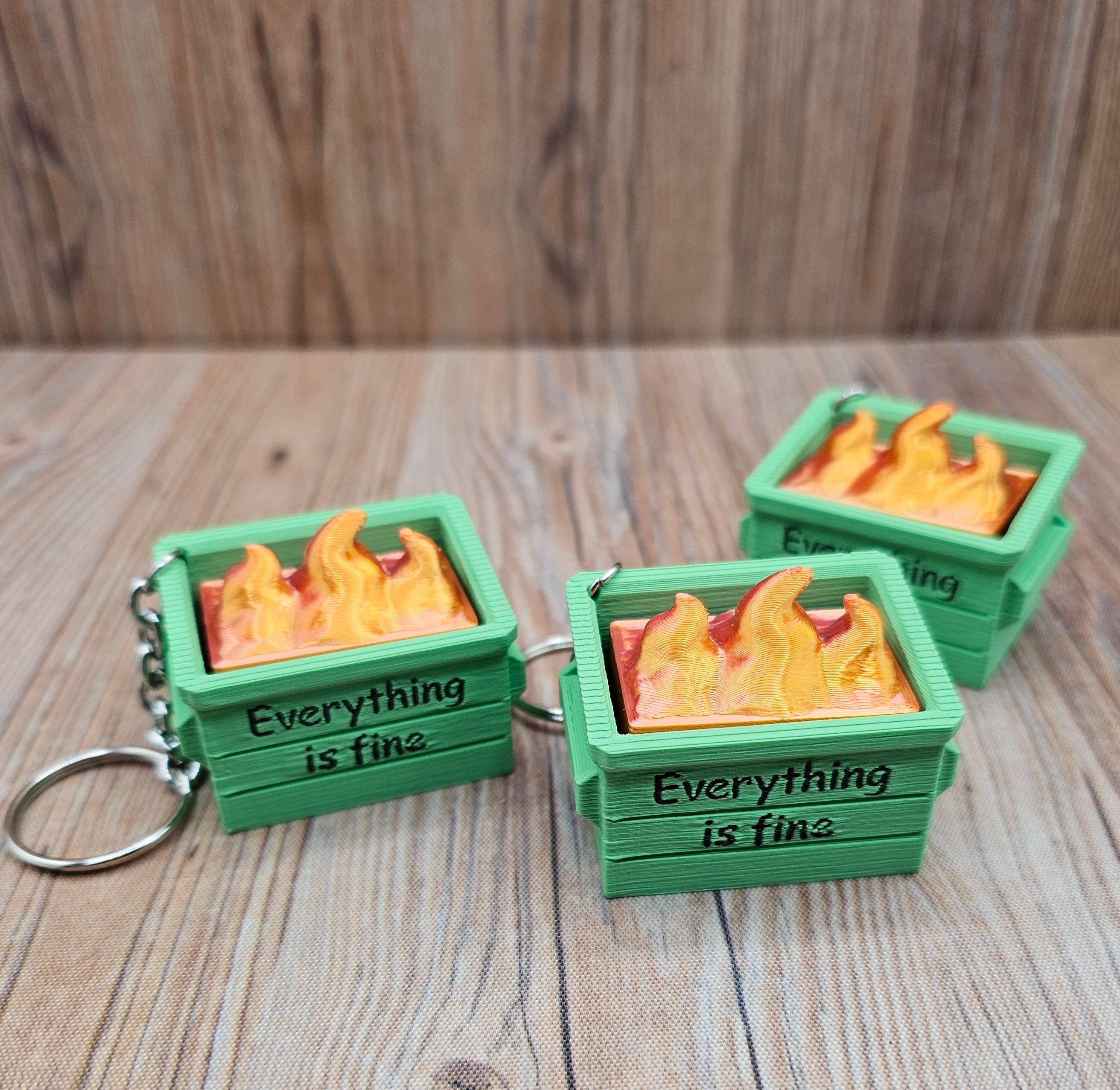 This fun and stress-relieving keychain is shaped like a tiny green dumpster with the phrase “Everything is fine” on the side — and yes, it’s on fire. The flames are 3D printed with built-in clicky motion, giving you a tactile, fidgety feel every time you press them down.