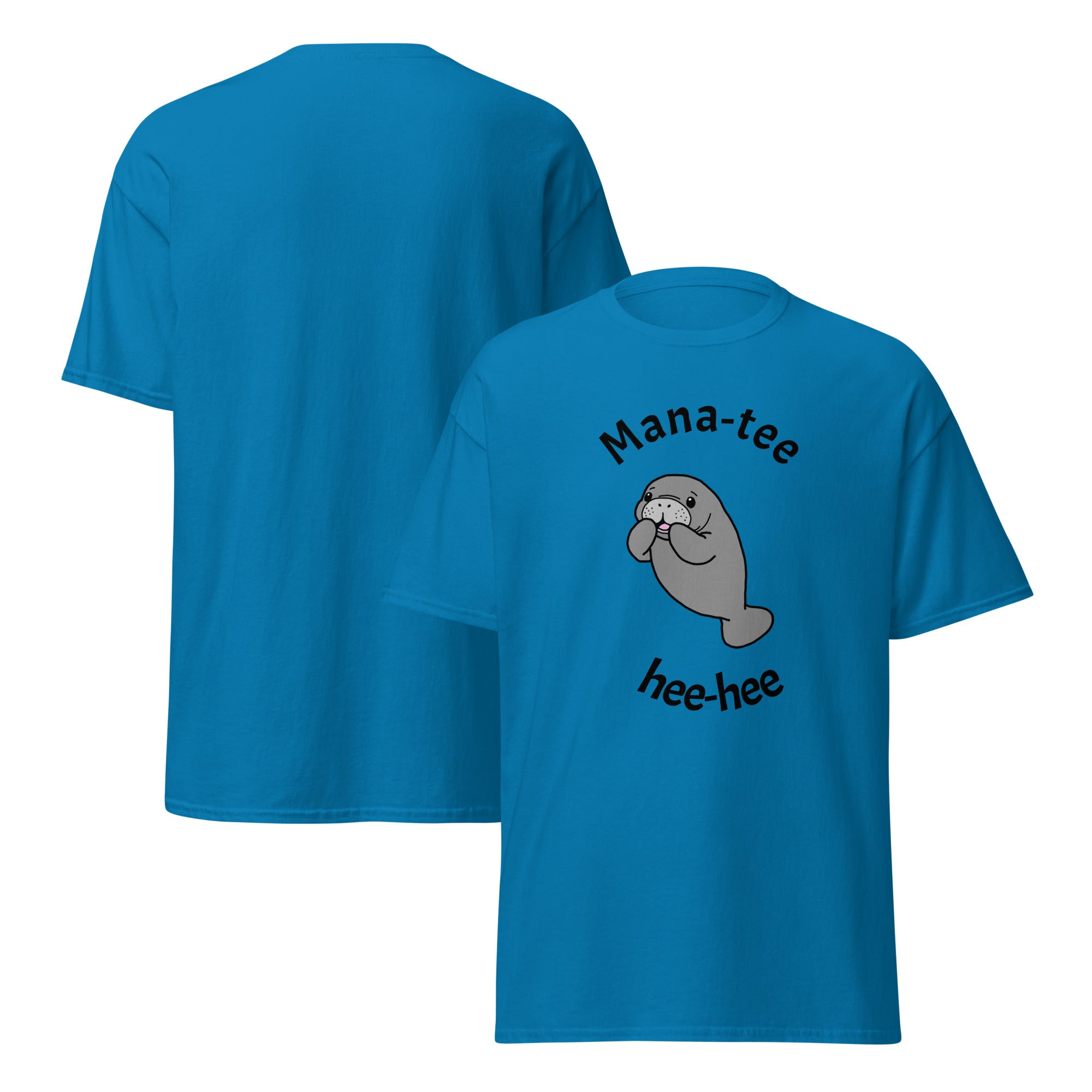 Featuring a sweet, cartoon manatee hiding a laugh behind its flippers, this tee brings soft humor and cozy charm to your wardrobe. Made from 100% cotton, it’s lightweight, comfortable, and perfect for anyone who appreciates gentle puns, cute creatures, and a little splash of joy.
