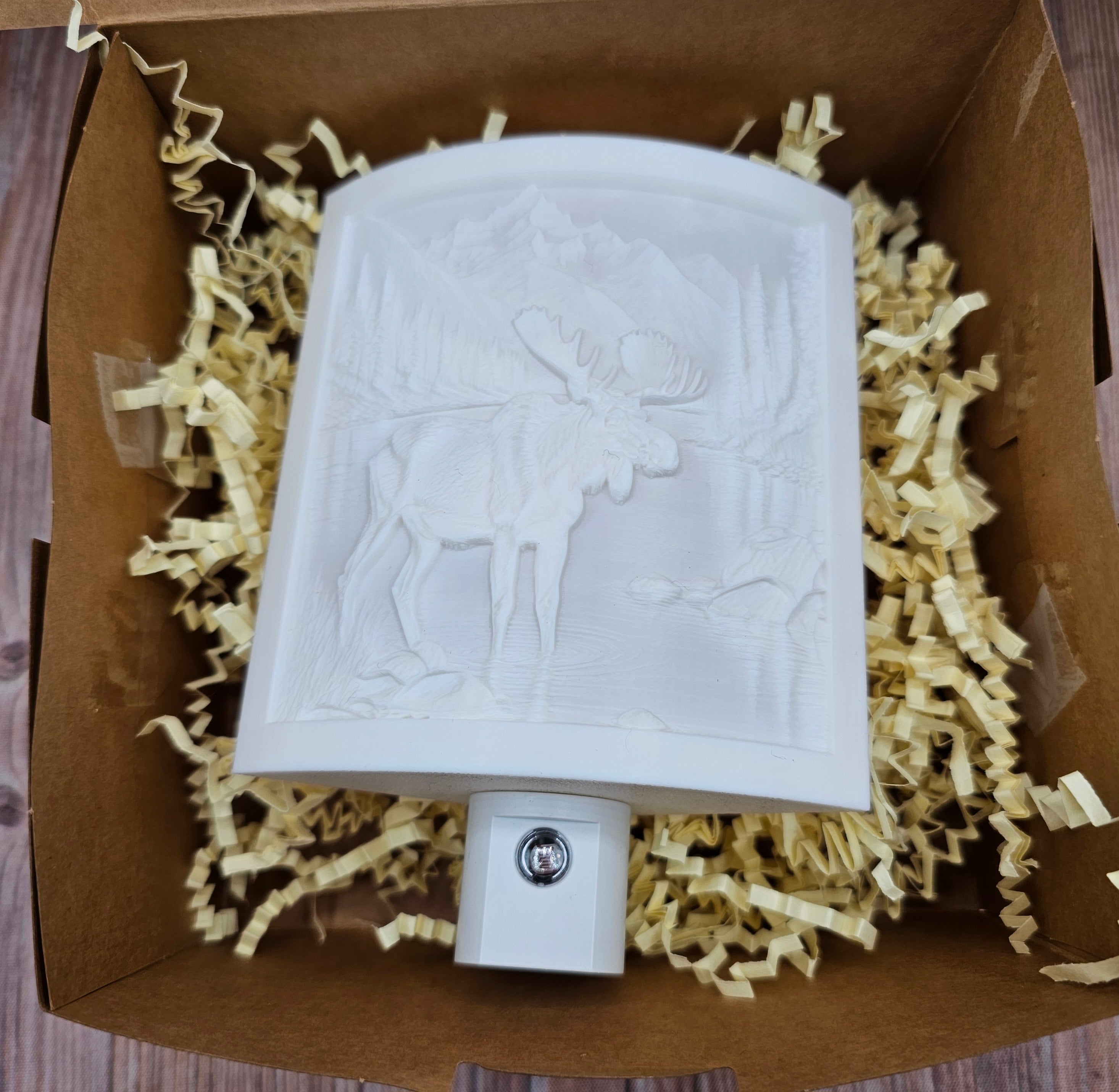 This moose nightlight is an ideal décor piece for wildlife enthusiasts, outdoor lovers, or anyone who appreciates rustic, nature-inspired design. It also makes a thoughtful gift that blends artistry, warmth, and functionality.