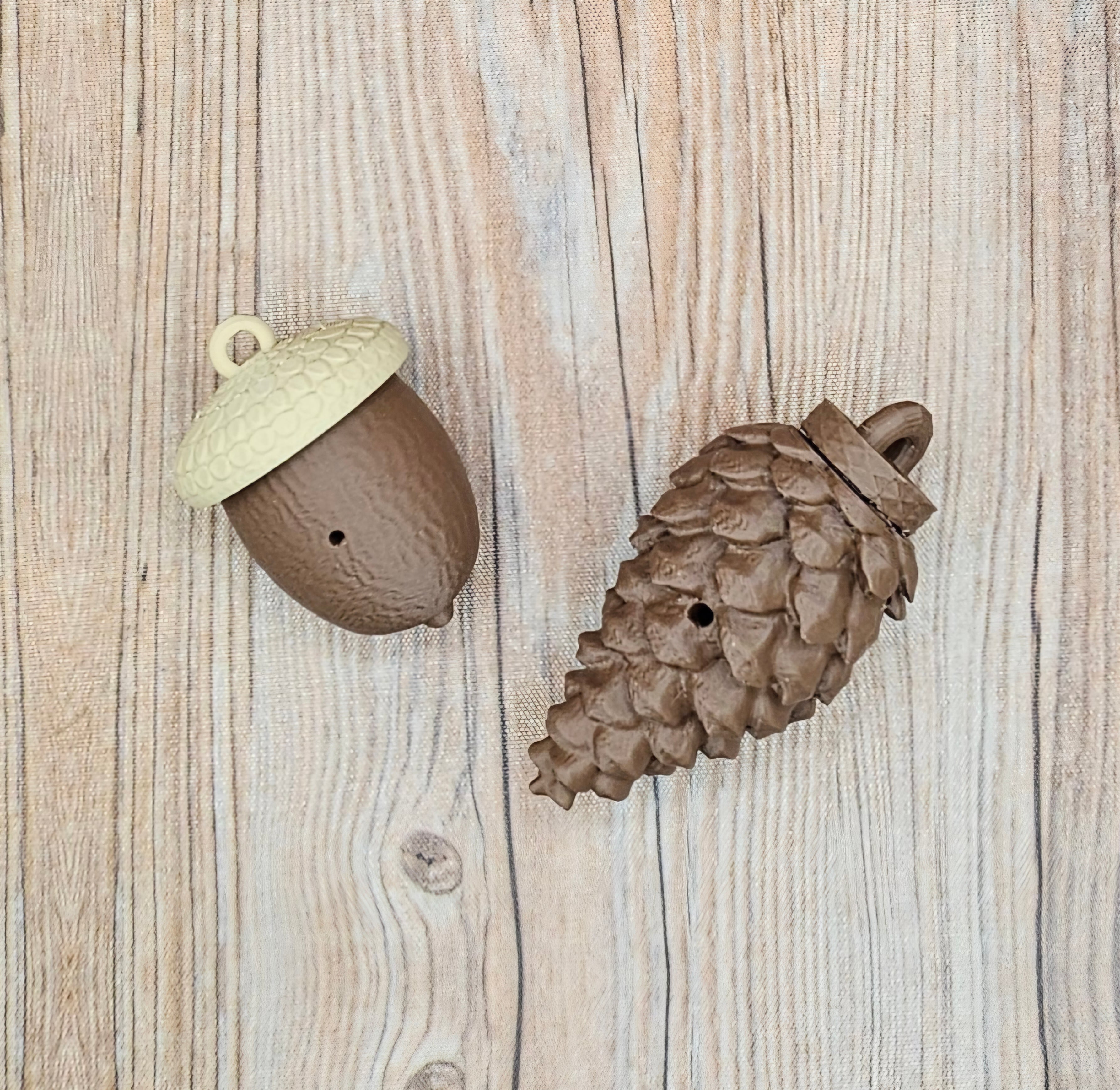 Designed for intentional scent work, these 3D-printed scent training vessels offer a simple, nature-inspired way to contain and present training odors. Each vessel is shaped like a familiar outdoor object, such as an acorn or pinecone, helping integrate scent training into naturalistic environments.