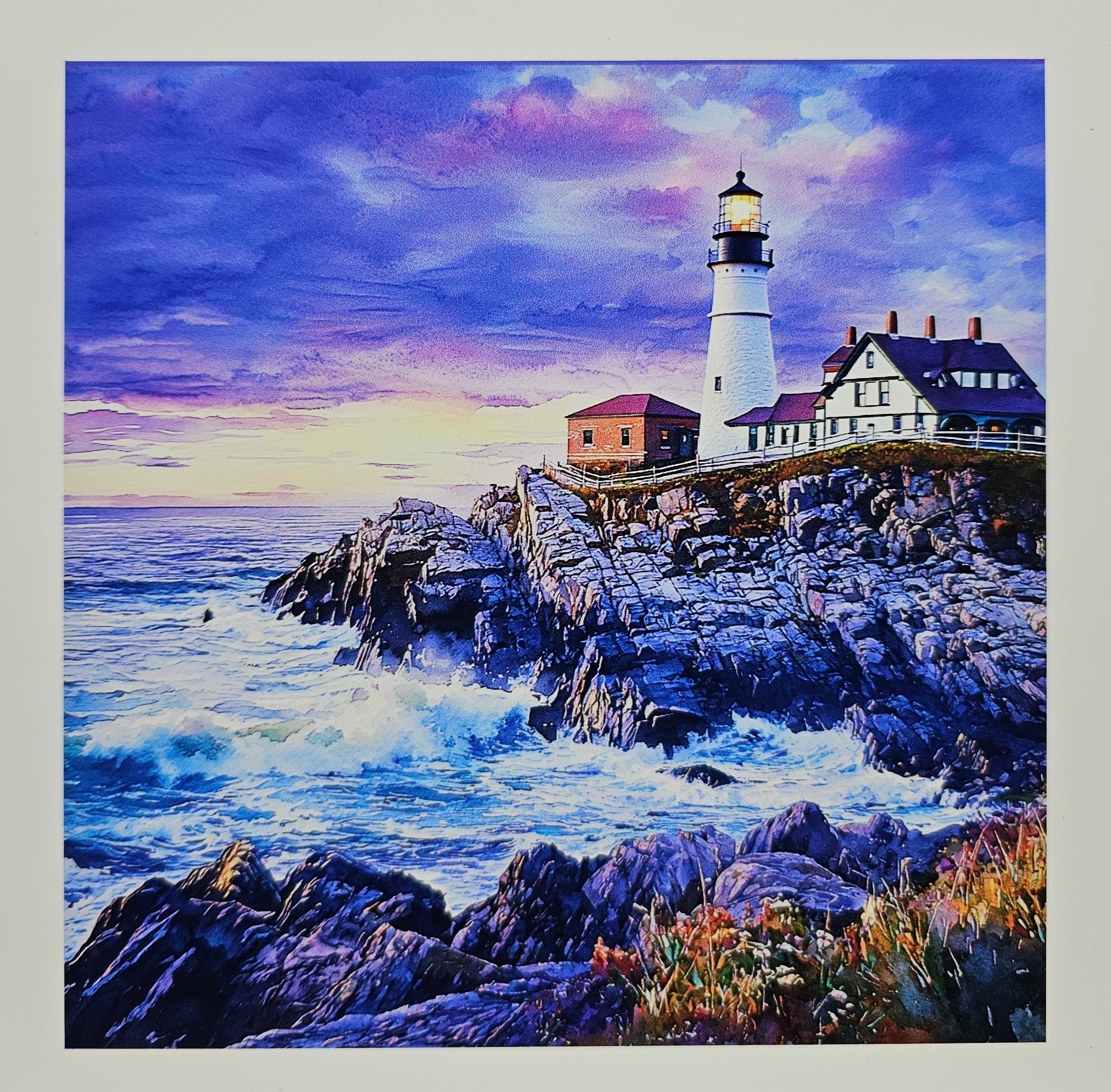 A calming coastal lighthouse standing watch over the waves. Ideal for beach lovers, nautical décor, or anyone who finds peace in ocean scenery.