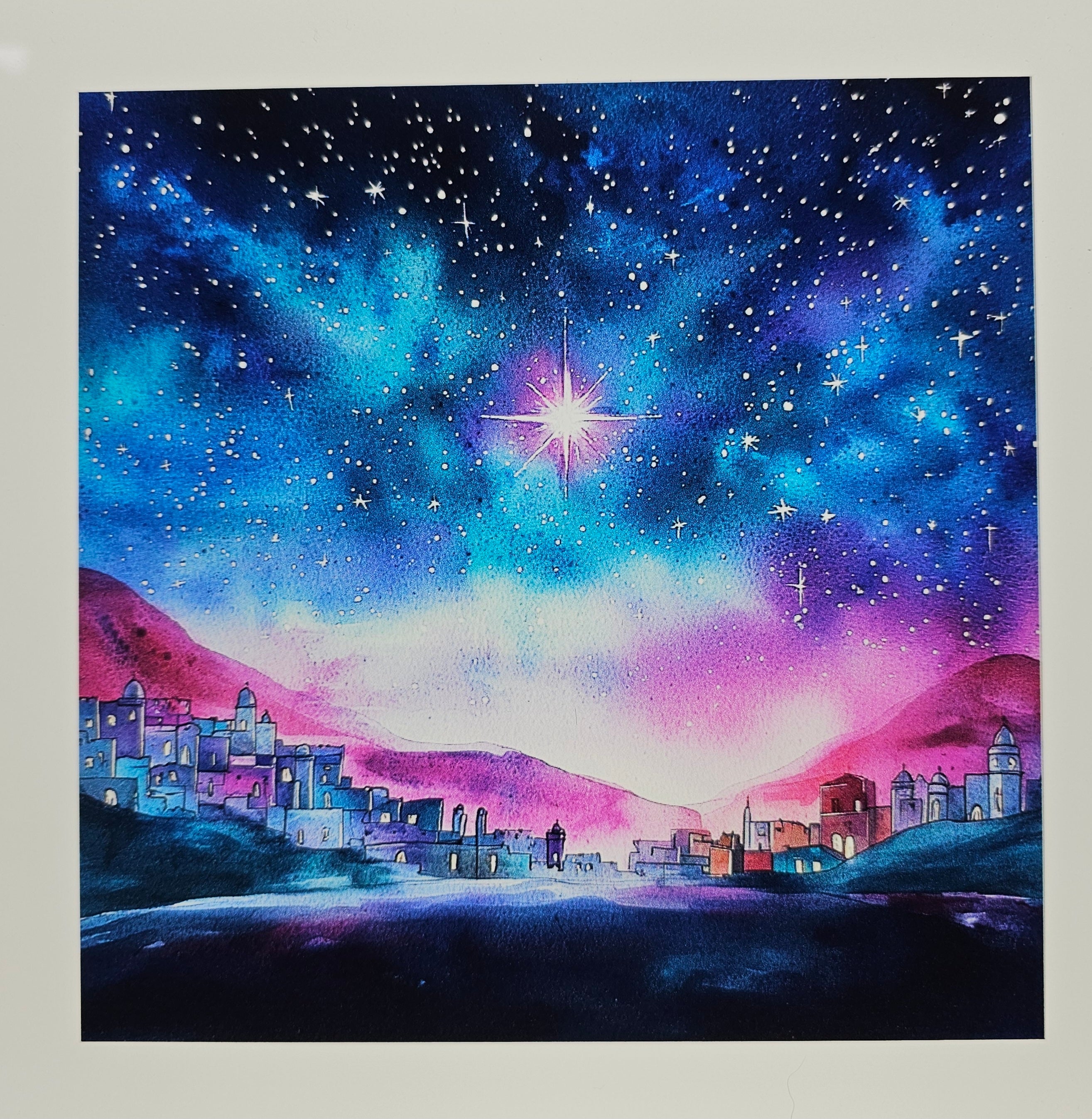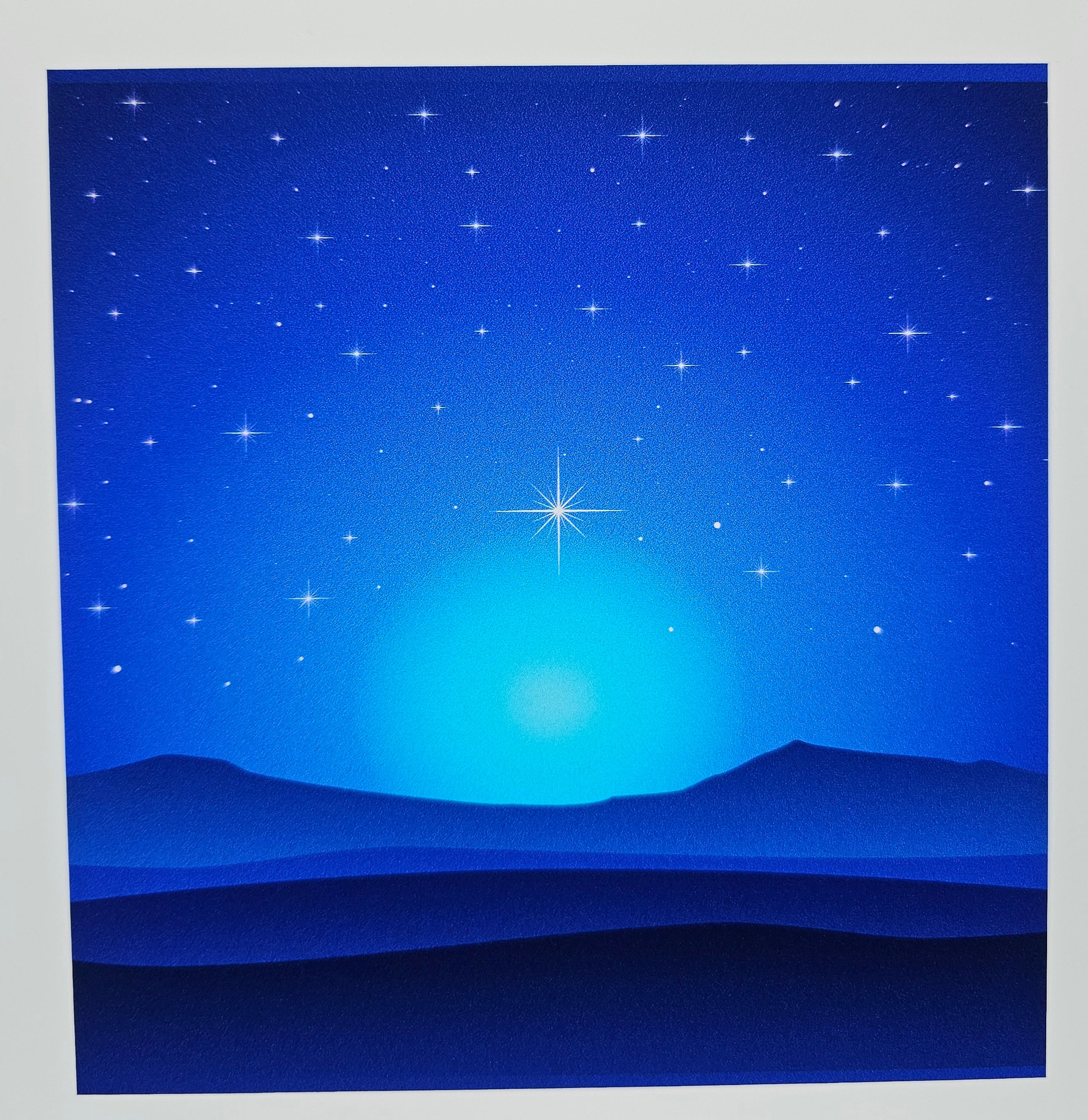 A celestial night sky illuminated by a brilliant guiding star, reminiscent of nativity themes. Simple, elegant, and uplifting—perfect for spiritual or inspirational décor.